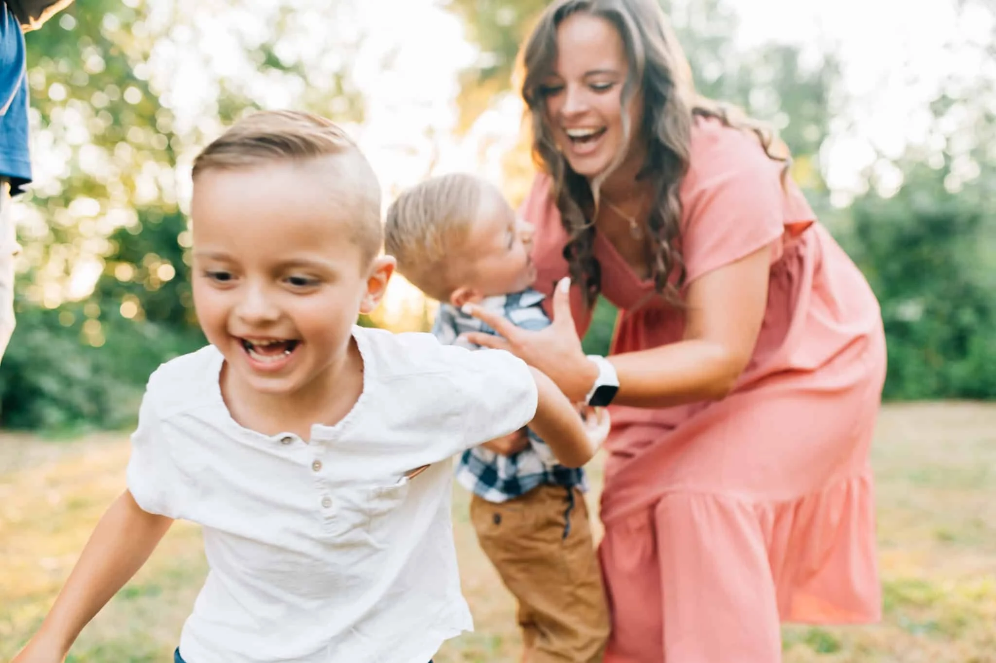 If you’ve ever worried about how your kids will behave during family photos — you’re not alone. As a family photographer I talk to so many parents who tell me they’re nervous their kids won’t sit still, listen, or smile on cue. I totally get it-I also hope and pray my kids will listen and not smile weird during my own family photos. But here’s the good news: your kids don’t have to be perfectly behaved to get beautiful photos. In fact, the best images often come from the unplanned moments — the giggles, the silly faces, the cuddles, and the chaos. My style of photography is very candid and play-based, which means your kids get to move, laugh, and have fun instead of posing stiffly for the camera.