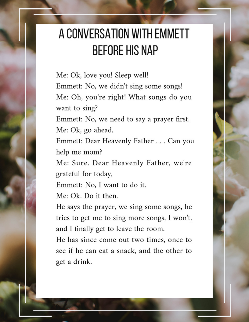 I remember learning this lesson the best when my oldest was about a year old. We had a TV stand with no doors so all of our stacks of DVD’s were totally accessible to that little busy body. He would knock ALL the stacks down, I would get frustrated and fix it, and repeat. All day. What a fun game. I finally realized that I was going to go crazy, so I stopped fixing it. And guess what? It was ok. Did we have a mess of DVD’s on the floor? Yep. Did it still bug me a little? You betcha. But it was definitely worth it to let it go. That may seem like a silly example, but that experience has paved the road for other things I’ve had to let go which were a lot harder to deal with. You definitely have to pick your battles when you’re a mom. And you have to learn how to just let some things go and not let them bother you.